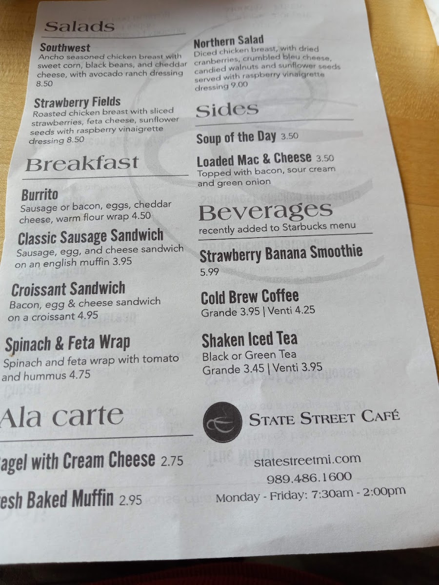 If you're searching for a cozy, welcoming spot to enjoy a delightful meal or a quick caffeine fix, look no further than State Street Café, nestled conveniently at 715 E Main St, Midland, MI 48640. This charming café is a local gem that serves a well-curated selection of breakfast and ala carte items that tantalize the taste buds with fresh, robust flavors.